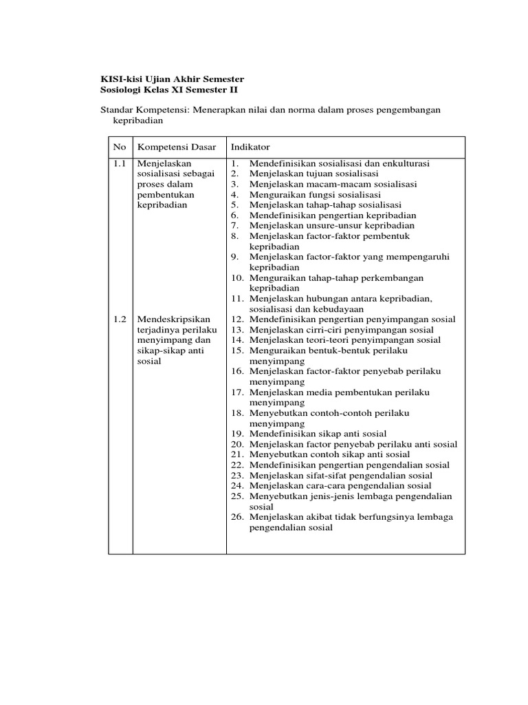 Butuh banget disaat kondisi sekolah online ini kak. Pengertian sosialisasi sosialisasi (kamus bahasa indonesia): 45 soal merupakan pilihan ganda dan 5 soal adalah essai. 0 respones to soal uts sosiologi kelas x xi semester 2 + kunci. Pernyataan berikut ini bukan manfaat dari belajar sosiologi. Simak juga kata berima pada syair. Buku esps bahasa indonesia adalah buku pendalaman materi untuk siswa sma/ma kelompok wajib. Buku ini terbagi atas 2 versi, yaitu versi siswa dan versi guru. Pilihlah satu jawaban yang tepat! Sudah tersedia rpp sosiologi peminatan kelas x xi dan xii kurikulum 2013 format 1 lembar revisi terbaru tiga komponen dalam format word/doc di laman ini. Artikel tentang soal sosiologi kelas 11 untuk siswa sma/ma/smk sederajat, tahun 2021 soal pg dan essay pelajaran sistem informasi. Walaupun hanya ringkasan namun isinya sangat padat selain itu buku pr lks intan pariwara ini memiliki paket soal yang sangat banyak menyesuaikan jumlah kd. Soal pkn kelas xi ini sangat cocok untuk digunakan sebagai alat untuk mengukur pengetahuan siswa tentang materi yang dia dapat di semester 2.
